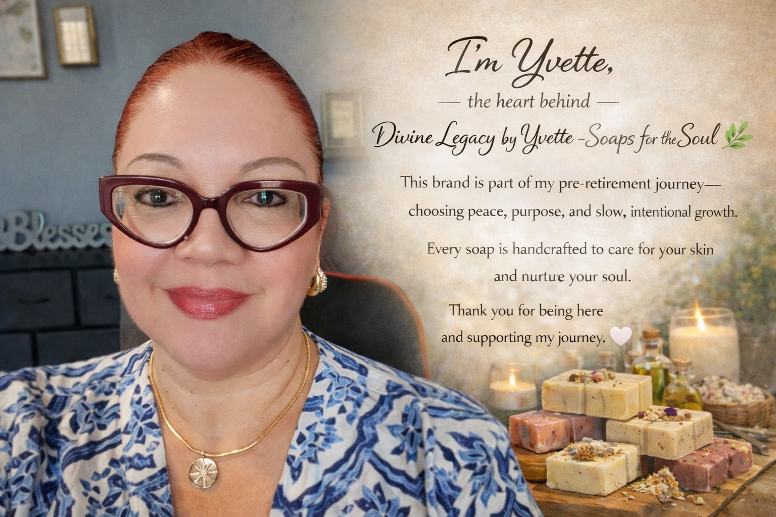 Discover the heart and soul behind Divine Legacy by Yvette, LLC Soaps for the Soul. Learn about Yvette's transformative journey and the values that guide her handcrafted creations. Join us in celebrating wellness, gratitude, and a divine legacy in every bar of soap.